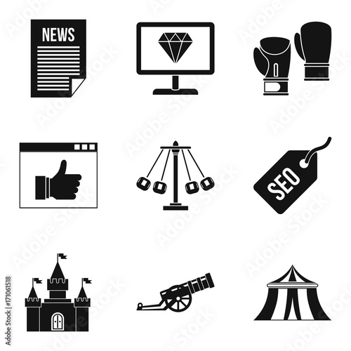 World news icons set, simple style