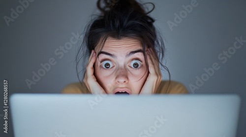 Worried user reading a negative performance review on their computer. Featuring disappointment and anxiety