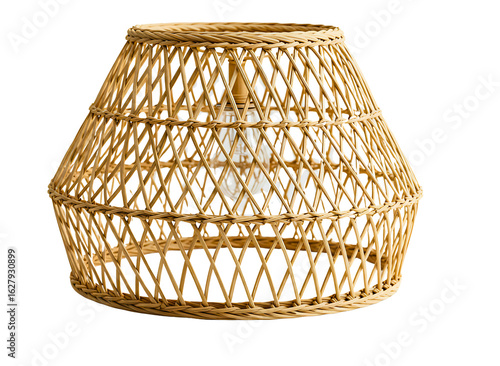 Woven rattan lampshade for interior design isolated on transparent background