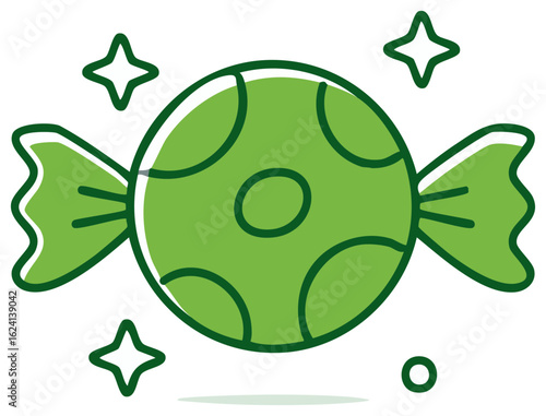 Wrapped green candy with sparkles flat design icon illustration