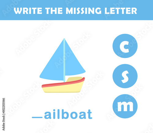 Write the missing letter. Worksheet for kids. Find missing letter worksheet for children.