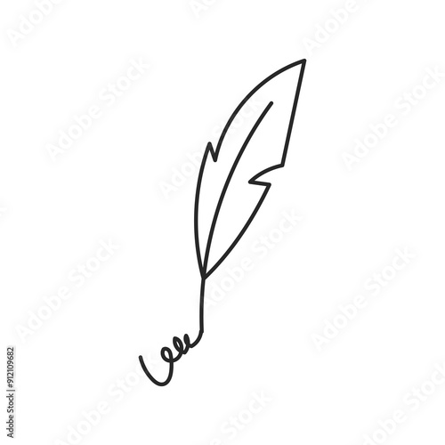 Writer Pen Feather with scribbles Doodle icon. Hand drawn writing symbol. Isolated vector illustration