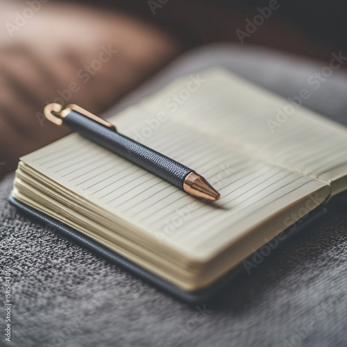 Writing inspiration cozy workspace with notepad and pen home office still life comfortable environment close-up view creative reflection