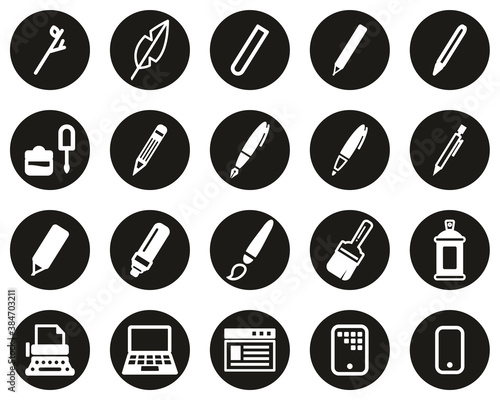 Writing Tools Icons White On Black Flat Design Circle Set Big