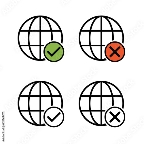 WWW world wide web set site symbol, Internet collection icon, website address globe, flat outline sign