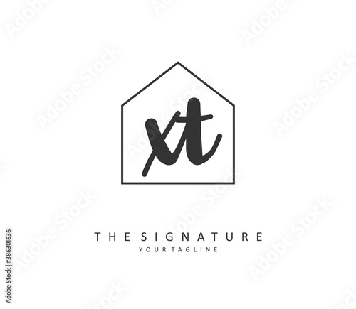 X T XT Initial letter handwriting and signature logo. A concept handwriting initial logo with template element.