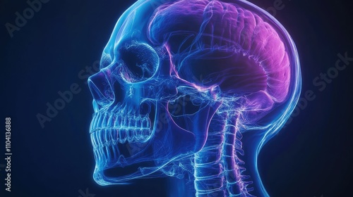 X-ray head scan, showing cranium and facial bones, 3D illustration
