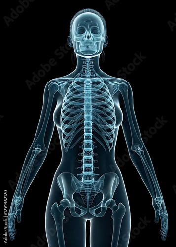 X-ray of human body of a Women with skeleton, Perfect for medicine works. Isolated on a black background
