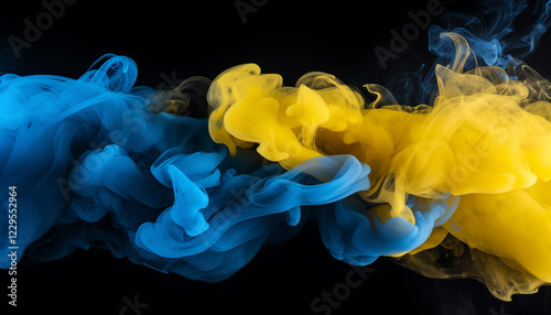 yellow and blue smoke on black