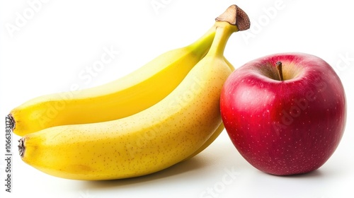 Yellow banana and ripe red apple on a white background Fresh fruits rich in fiber