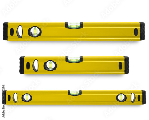Yellow bubble levels isolated on white, set. Building measuring instrument