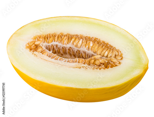 Yellow cut melon isolated on white background