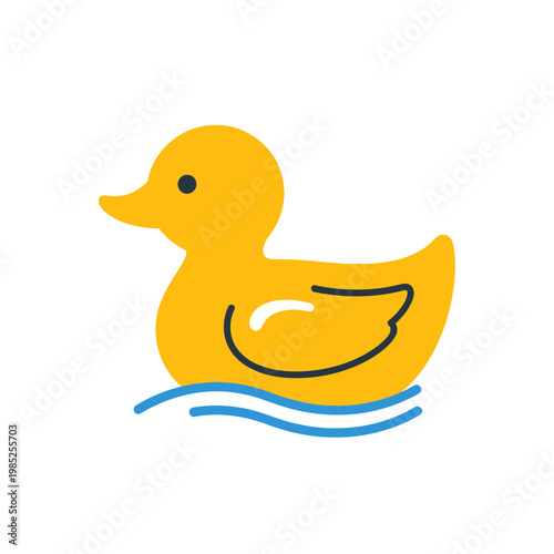 Yellow duck floating on water with simple design