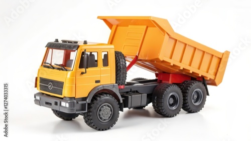 Yellow Dump Truck Toy on White Background