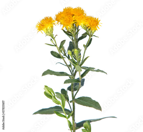 Yellow flower of German elecampane isolated on white. Inula Germanica