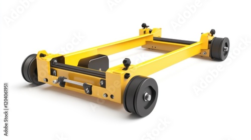 Yellow industrial dolly, studio shot, transport, white background, logistics