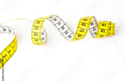 Yellow measuring tape - white background