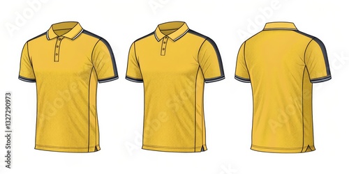 Yellow Polo Shirt Mockup with Gray Accent, Clothing , Apparel