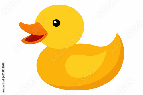 Yellow rubber duck isolated on a white background. Bath toy duck. Concept of childhood, bath time, playful design. Print, icon, design element. Graphic art