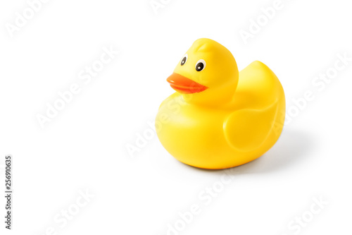 Yellow rubber duck isolated on white background