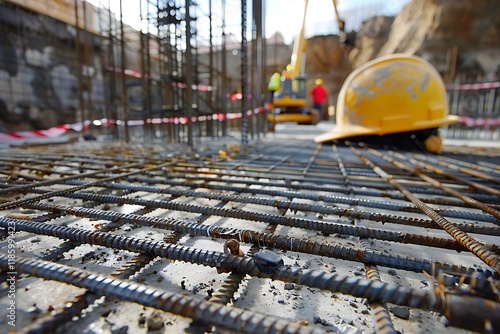 Yellow safety helmet on construction site