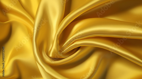 Yellow silk satin fabric texture background with sweeping ripples and folds. A.I. generated.