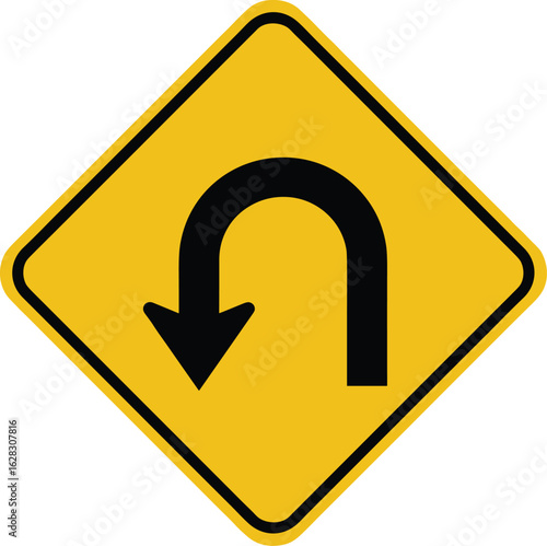 Yellow Traffic Sign Illustration of U-Turn Symbol for Road Transportation Design, Transparent PNG Vector Graphic