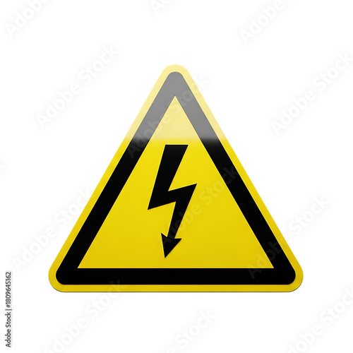 Yellow Triangle Warning Sign, black lightning bolt symbol, cutout, PNG isolated on white or transparent background