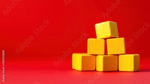Yellow wooden cubes displaying a pay per click message on a red background serve as a conceptual symbol for PPC with available copy space image