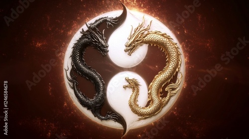 Yin Yang Dragons Gold And Black Celestial Symbols