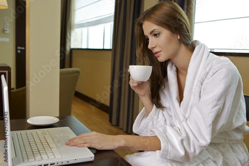 young adult brunette woman starting day