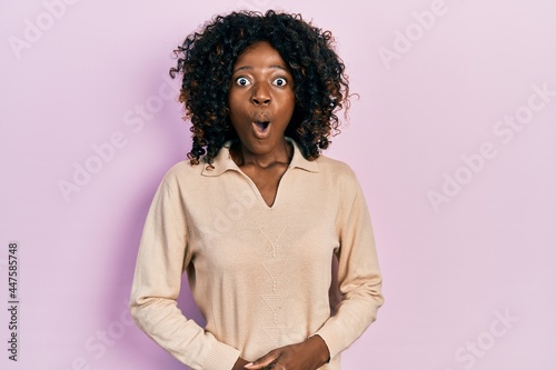 Young african american woman wearing casual clothes afraid and shocked with surprise expression, fear and excited face.