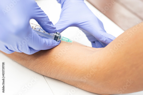 Young Asia lady nurse giving Covid-19 . Vaccination. Health care and medicine.