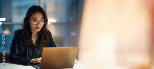 Young Asian female executive on her laptop in the office working in the conference room