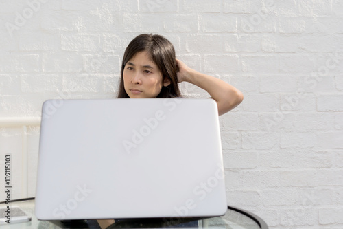 young asian woman internet on mobile phone during rest in coffee shop