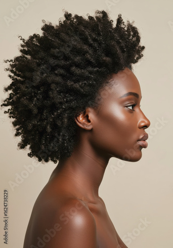 Young Black Woman Profile Portrait Natural Beauty Clean Skin Side View