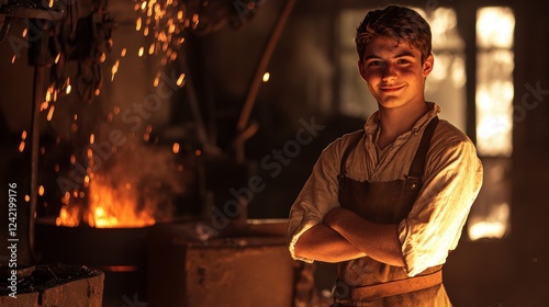 young blacksmith apprentice in a forge