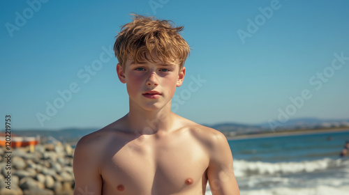 Young boy enjoying summer at the beach in natural light photography