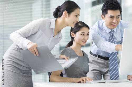 Young business people using computer in office