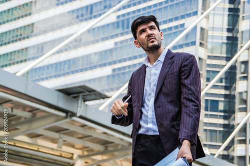Young businessmen look good on the outside background.