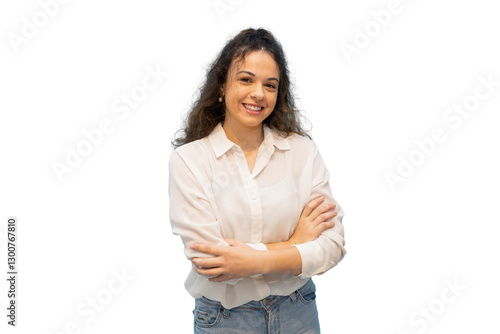 Young businesswoman smiling with crossed arms on transparent background