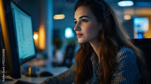 young businesswoman working on a computer in an office generative ai
