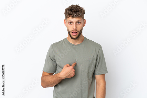 Young caucasian handsome man isolated on white background pointing to oneself