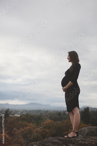 Young, caucasian, pregnant mom - enjoying her coming baby outside