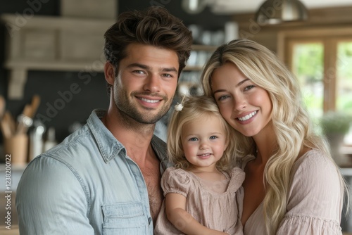 Young couple embracing happily outside their new home depicted in neural-network art. Beautiful simple AI generated image