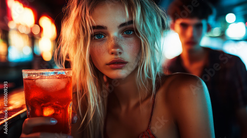 Young couple in a bar thinking about ending their relationship