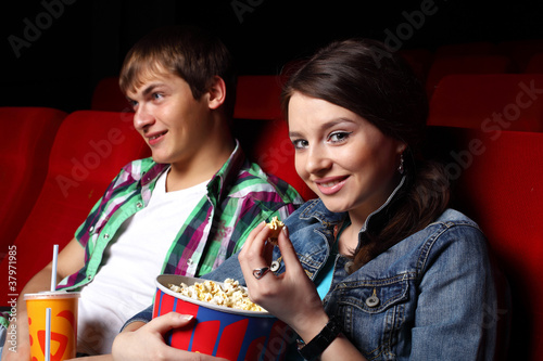 Young couple in cinema watching movie
