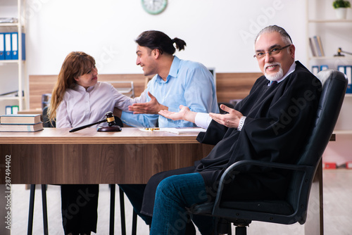 Young couple in the courthouse in divorce concept