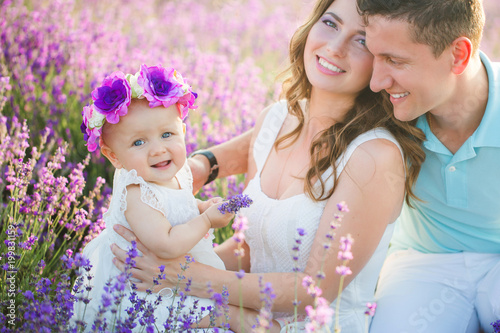 Young family in a lavender field