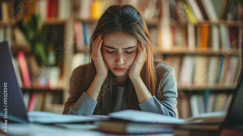 Young female College student frustrated and stressed out while studying.